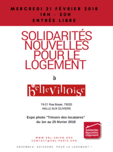 RDV mercredi 21 février 2018 à 18H au 19 rue Boyer, 75020 (Halle aux Oliviers).