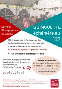 Après une longue trêve, le Groupe Local de Solidarités de Fontenay-sous-Bois reprend ses bonnes habitudes : il organise une nouvelle édition de sa Guinguette éphémère le 30 septembre au 129 avenue Foch !