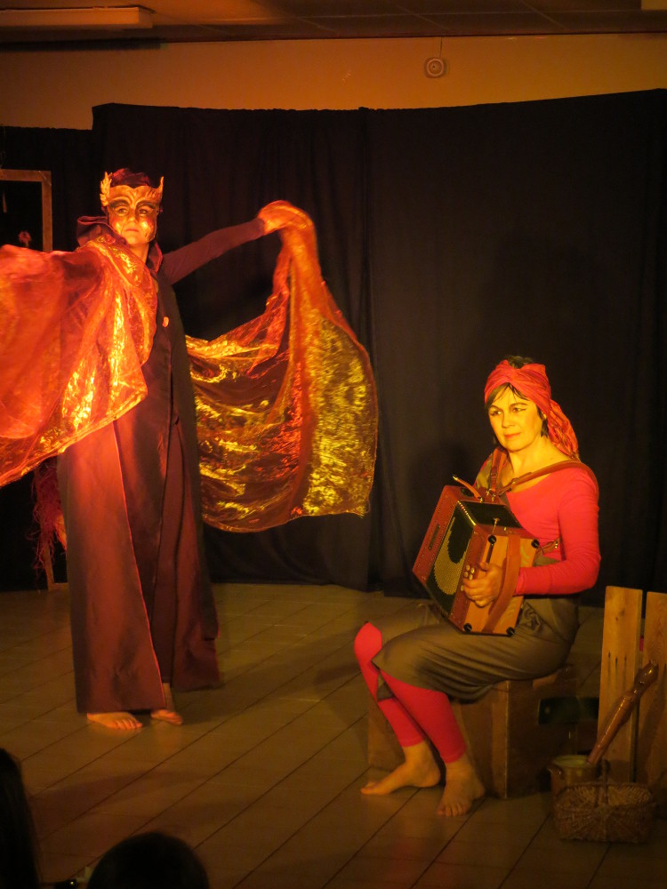 Les adultes étaient aussi conviés à ce spectacle et les masques et les jeux des acteurs ont captivé grands et petits ! Le texte navigue entre deux registres : « mythologique » quand l’Olympe est évoquée et « temps présent » pour commenter avec le recul nécessaire le comportement des dieux.